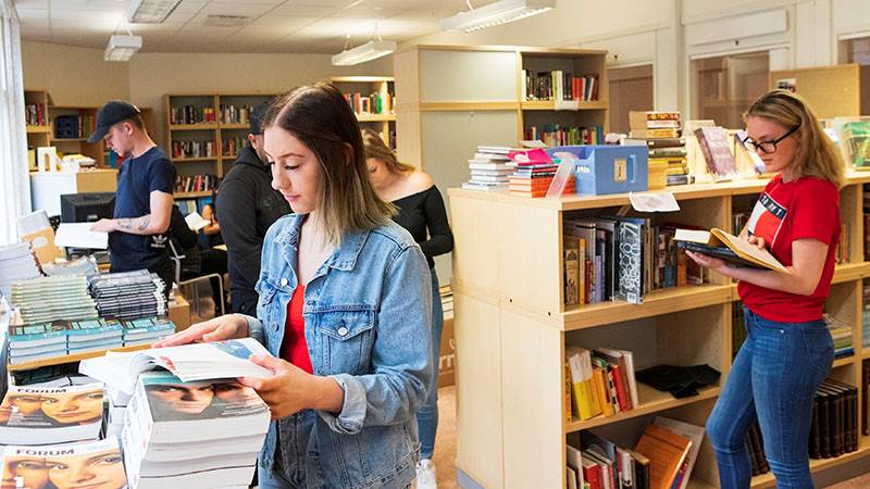 Här finns skönlitteratur på svenska och engelska, facklitteratur på svenska och flera tidskrifter om bland annat mode, sport, vetenskap och hälsa. Det finns även en särskild hylla med lättlästa böcker, för dig som inte är så van vid att läsa eller har ett annat modersmål än svenska. Du som har någon form av lässvårigheter kan även låna talböcker.